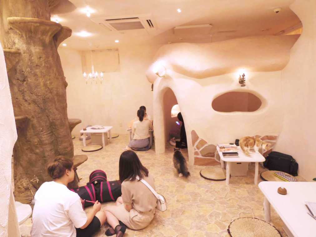受付で“入城料”1540円(曜日・時間帯により変動あり)を支払い、中に入ると可愛らしい猫たちがのんびりと過ごしています。お客さんは、老若男女問わず、海外からもたくさん訪れます。利用は時間無制限。コンセントも使用可能ですので、パソコンを持ち込んで仕事をしたり、1人で訪れてまったりと読書をしたりして過ごすのもおすすめ。