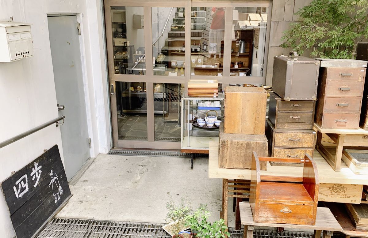 にぎわう吉祥寺の商店街「サンロード」を抜け、住宅街まで歩くこと約10分。五日市街道から、一本入った道に「四歩 吉祥寺本店(しっぽ きちじょうじほんてん)」はあります。お店の前には、古道具が並べられ、まるで昭和にタイムスリップしたよう。