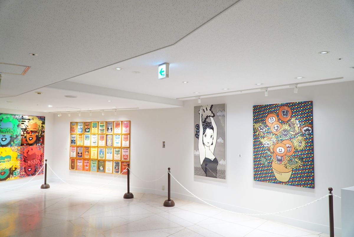 アートギャラリーでは2022年9月現在、森洋史氏の作品を展示。アンディ・ウォーホルの有名作品などをポップに昇華させた迫力のある展示は必見です!こちらの展示は2022年12月末日までの予定。