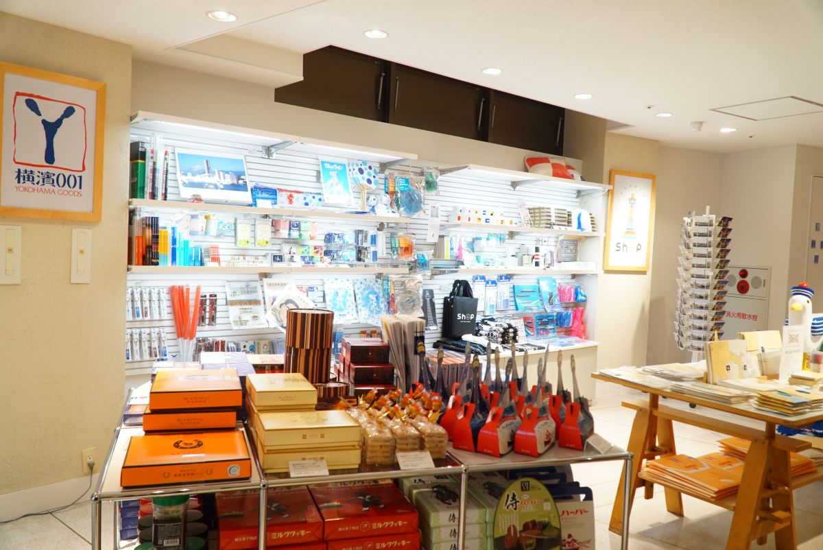 こちらはおみやげにぴったりな商品を販売するマリンタワーショップ。横浜にまつわるフード系みやげや雑貨などが揃っています。