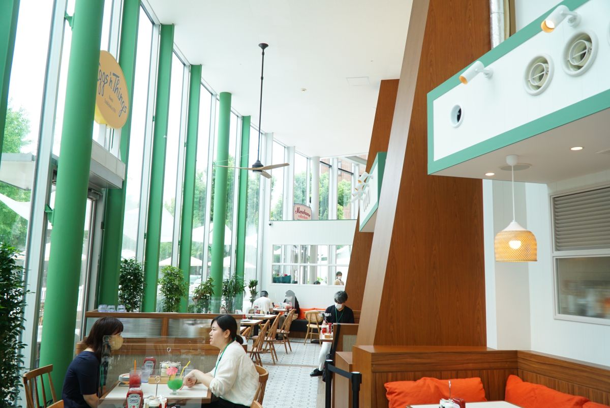 お腹が空いたら駆け込みたいのが、国内29店舗目となるパンケーキでも有名な「Eggs 'n Things 横浜マリンタワー店」。パンケーキメニュー以外にもボリューム満点のハワイアンメニューが揃います。大きな窓から心地よく光が差し込む落ち着く店内席のほかに、テラススペースも併設。
