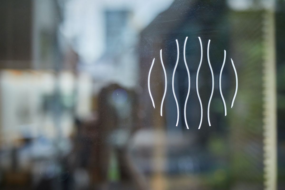 高さや間口などは周りの建物と同じ、コンクリート打ちっぱなしのような外壁と、ひょいと中を覗きたくなる視線の高さのガラス窓が街並みに異彩を放ちます。店の存在をことさらアピールすることなく、確認できる目印はガラス窓の隅っこに小さく書かれた「ki:」の文字と汽(水蒸気)を象形したロゴのみ。