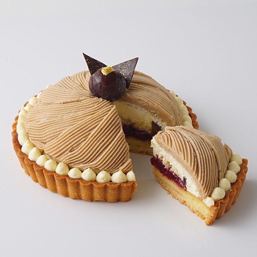 今年は多くのご要望に応え、5号サイズだけでなく少人数でも食べきれる4号サイズも登場!リッチな味わいのフランス産栗ペーストと上品な甘みの愛媛県産和栗ペーストを絶妙にブレンドしたマロンクリームのモンブラン。丹沢種の渋皮栗とほんのりバラの香るベリーのジュレをしのばせました。エシレバターを使用してしっとり焼き上げたタルトとお楽しみください。