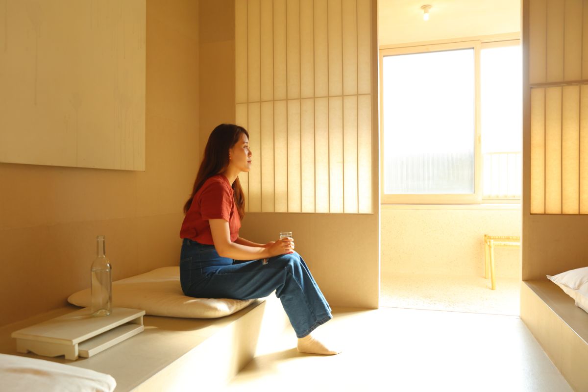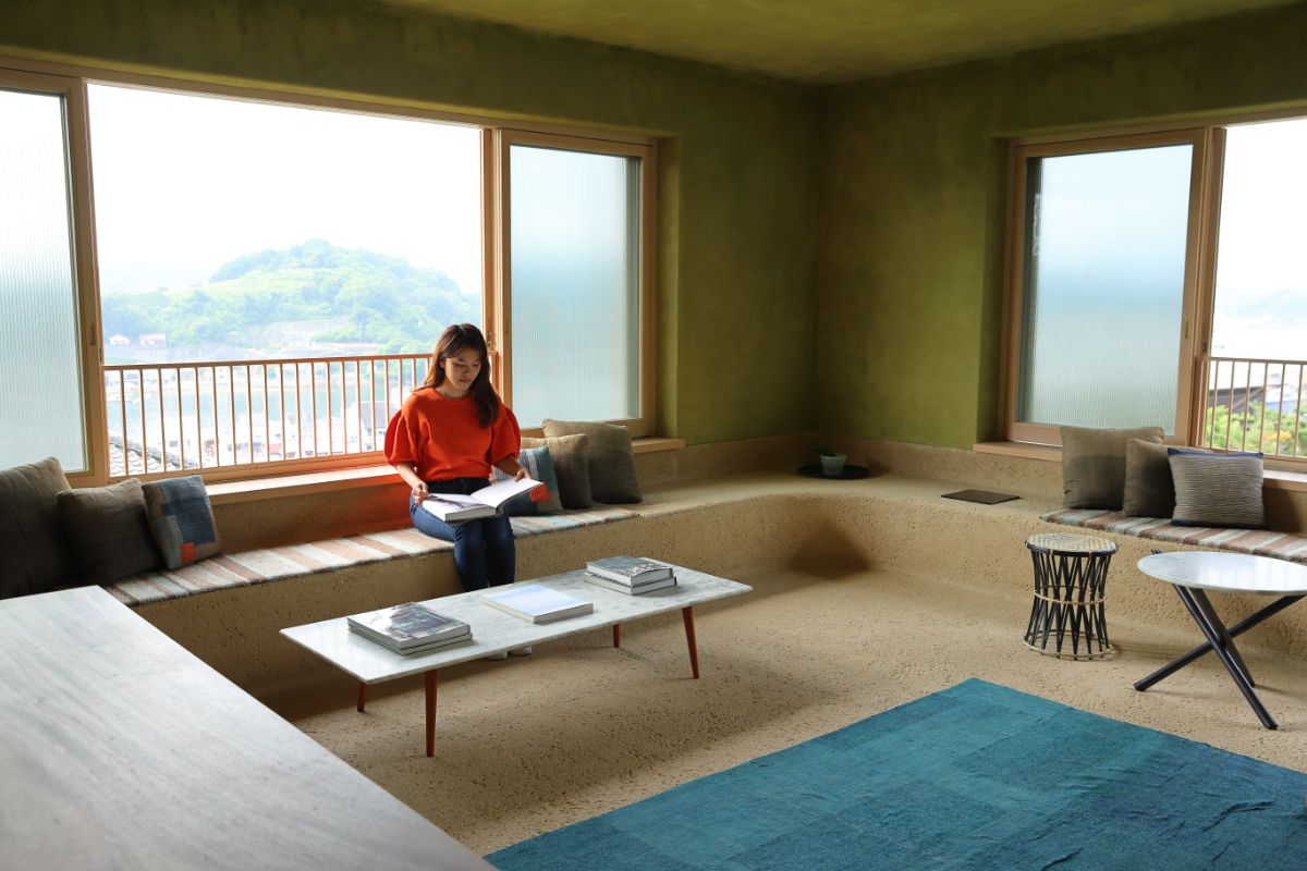 尾道を代表する歴史ある寺院、千光寺に向かう坂の途中に立つ「LOG」。昭和30年代のアパートメントをリノベーションした施設で、館内には宿泊施設のほかにカフェやダイニング、ギャラリーなどが併設されています。「LOG」は国際的に活躍する設計事務所「スタジオ・ムンバイ」がインド国外で初めて取り組んだ建設プロジェクトによるもの。和紙など自然の素材を館内に取り入れて、尾道の街並みと調和する仕上がりになっています。