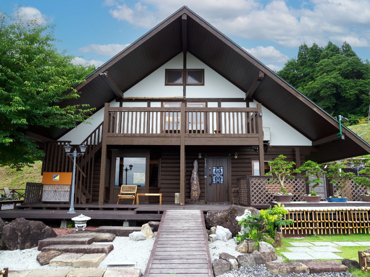 山の中腹にあり、自然豊かな環境が自慢の「天空のお宿 盆栽民宿 雅館」。ログハウス調の宿の周りには見事な盆栽がずらり。40年ほど前にオーナーの山岸さんが盆栽を趣味で始め、全国から集めて育てている盆栽を多くの人に楽しんでもらいたいと、この宿をオープンしました。今では、敷地内にある盆栽専用ハウスに、サツキを中心とした大小さまざまな盆栽約400鉢が並び、宿を訪れた人々を楽しませています。