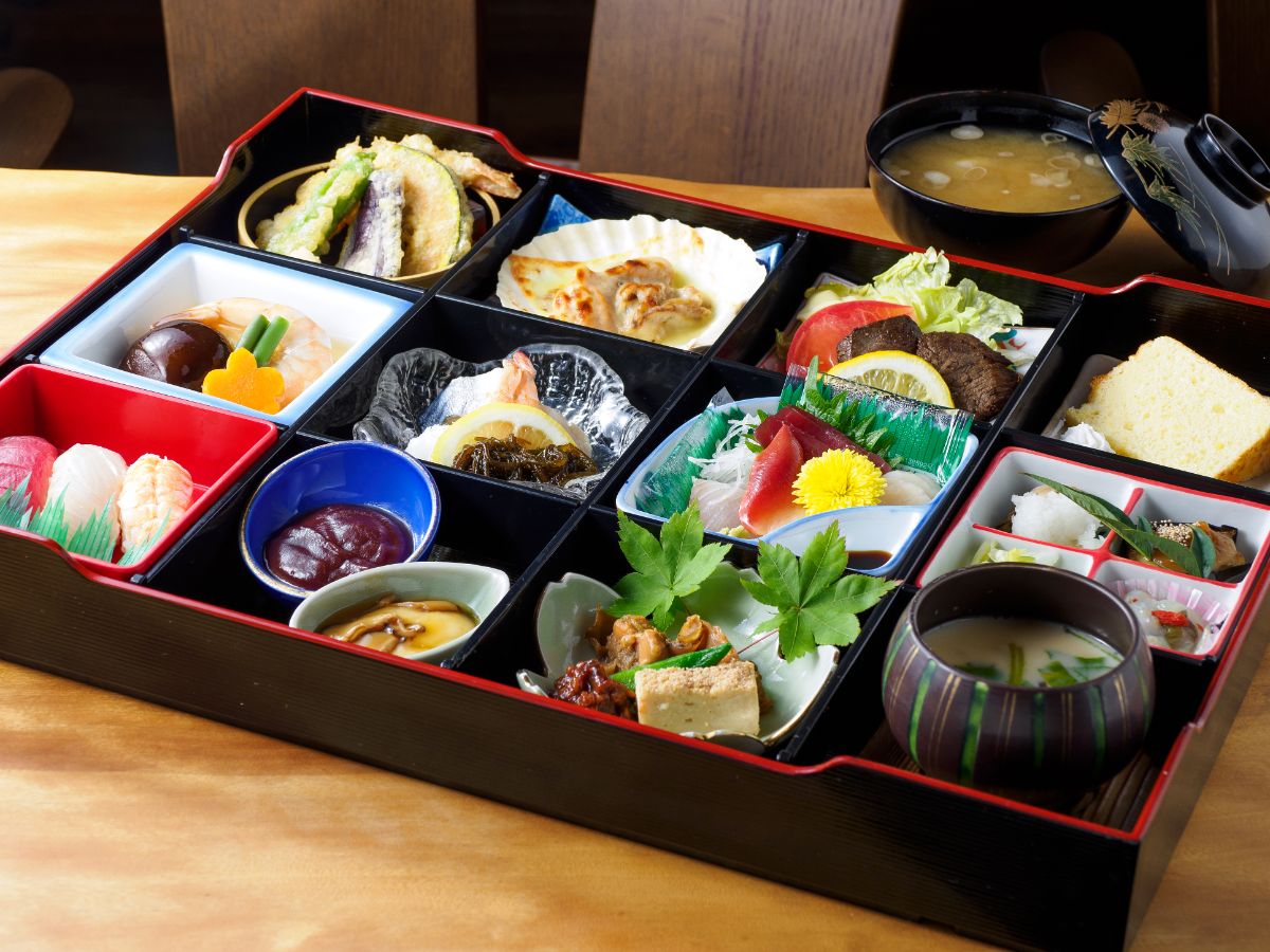 ※盆栽体験3300円(1週間前までに予約)、ケータリングは地産地消 和食3850円 、5500円、出張シェフコース1万6500円(1名)
