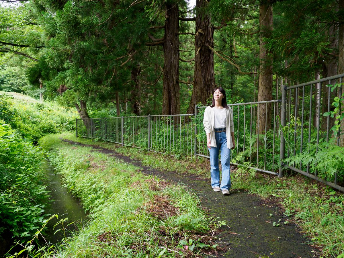 「照井堰用水」のそばには、世界遺産の毛越寺から中尊寺を結ぶ約3.2kmのトレッキングコースが整備されていて、遣り水の取り入れ口や分水、水門などが見られます。案内板の解説からその役割を学んだり、普段、見かける機会のない水路を眺めたりしていると、暮らしを支える水の大切さに気づかされます。