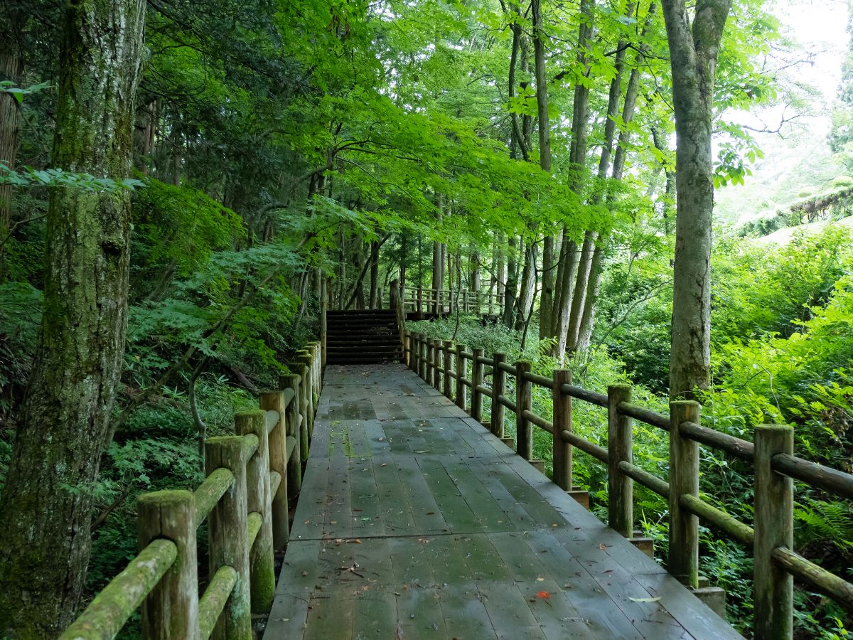 中尊寺側の散策路は湿地帯の木道になっていて、しっとりとした空気の中で森林浴を楽しめます。豊かな自然が魅力で、周辺はモリアオガエルの生息地やアジサイなど季節の花が咲くスポットがあちらこちらにあり、目を楽しませてくれます。平泉町の遺跡群など歴史的建造物を訪れながら散策するトレッキングコースは、少し距離が長めですが、歴史と文化、自然を一度に満喫できる充実した時間を過ごせます。滑りやすい場所もあるので、歩きやすい服装、靴で出かけましょう。