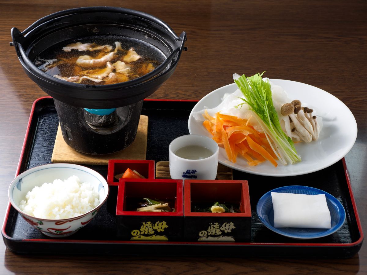 地元一関の酒造「世嬉の一(せきのいち)酒造」が営む「蔵元レストランせきのいち」では、生地を自分でのばす体験型の「手延べはっと膳」1500円が人気です。もちもちの生地を好みの薄さ、大きさにちぎり、鶏だしがきいた醤油ベースのつゆでたっぷりの野菜と一緒にいただきます。「はっと」はつるりとした食感で野菜の旨味となじみ、ほっとする味わい。なにより自分で生地をのばした、はっと料理は格別です。地元食材の小鉢や自家製の甘酒など、膳には滋味深い品が並び、お腹も心もすっかり満たされました。