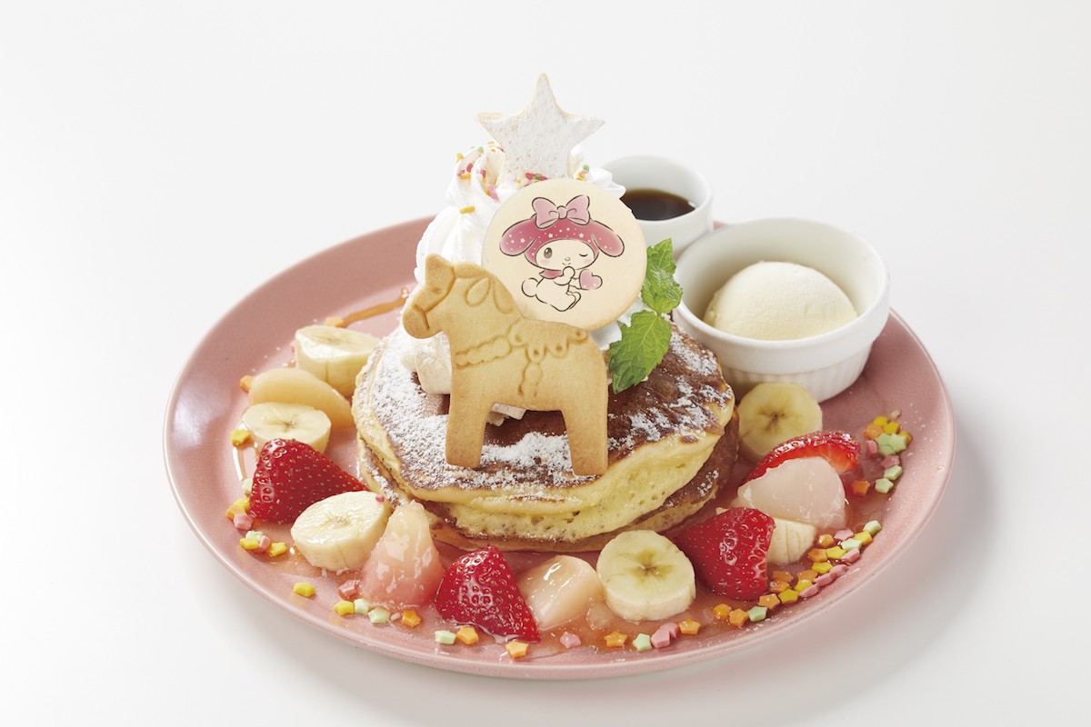 「マイメロディのメリーゴーラウンドパンケーキ」1518円はバターミルクパンケーキと自家製クッキーが楽しめるひと品です。クリームの下に隠れたアーモンドメレンゲがアクセントになっています。