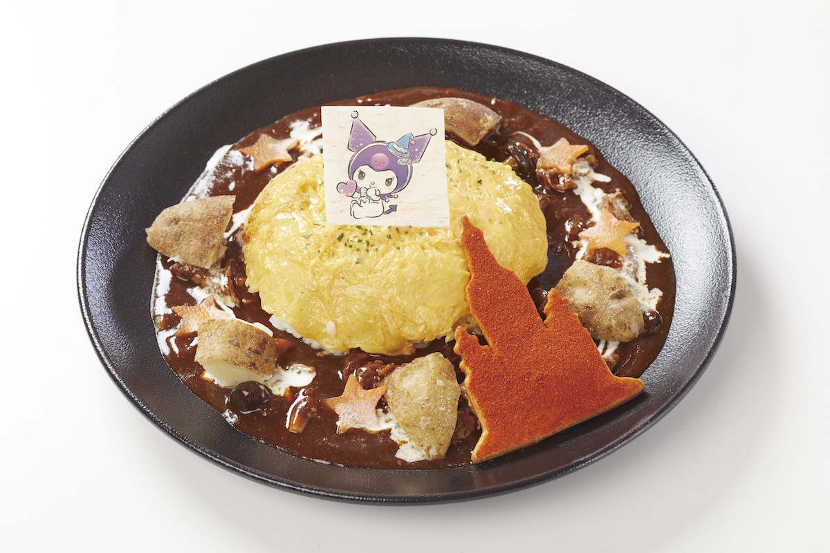 デザートだけでなく、食事メニューもかわいくておいしいメニューが揃います。「クロミのキャッスルオムカレー」1518円はクロミをイメージした黒カレーとふわふわとろとろの卵が相性抜群です!