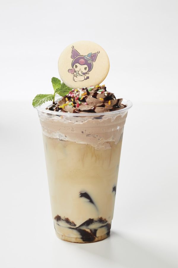 クロミをイメージしたドリンクも!「クロミのチョコレートラテ」968円はコーヒーゼリーがアクセントになっています。