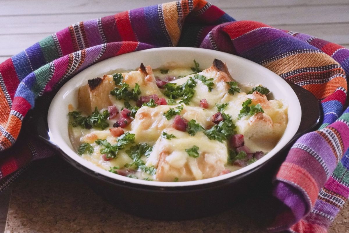 スープにパンを浸す食べ方がありますが、それにチーズを加えて焼いたアレンジレシピをご紹介します。熱々をハフハフしながら食べれば、体も温まりますよ!