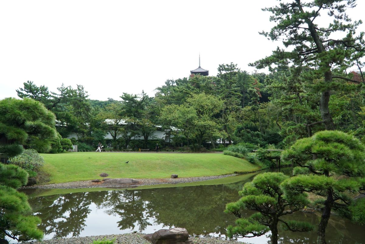 園内の中心部に立つこちらの塔は、重要文化財の「旧燈明寺三重塔」。室町時代の康正3年(1457)に建築された、園内で最も古い建物です。現在の京都・木津川市の燈明寺から移築されたもので、三溪園のシンボル的な存在。