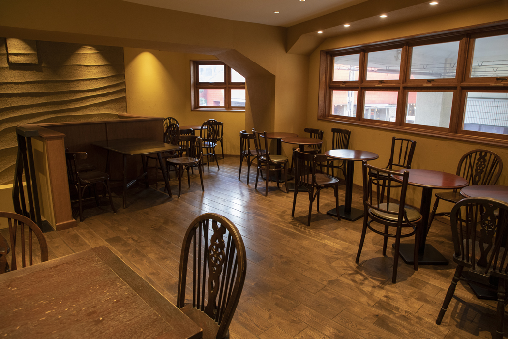 2階は、ゆったりと木製のテーブルと椅子が並ぶレイアウトで純喫茶のよう。ちょっと隠れ家風の雰囲気も素敵です。