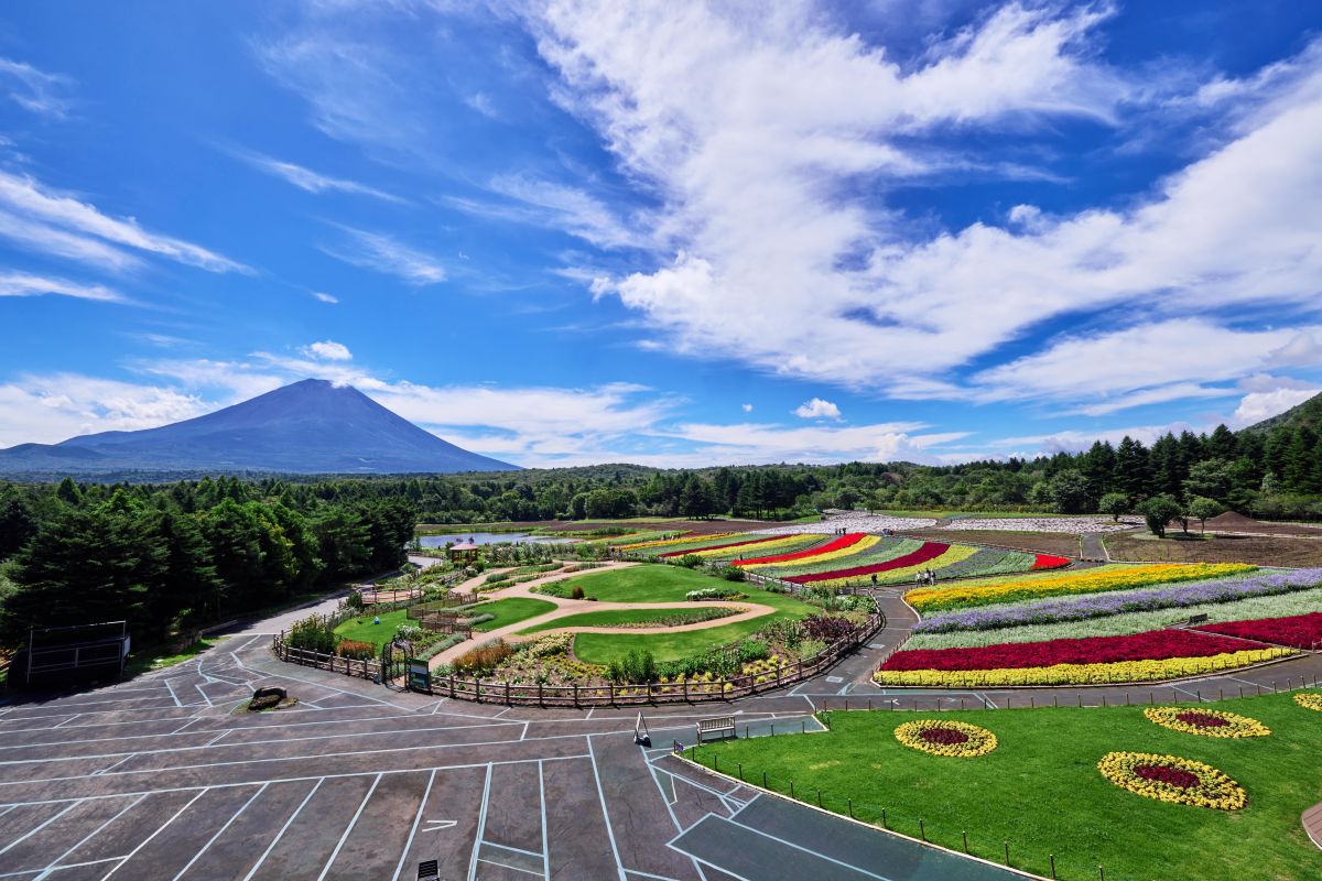 チケット売り場からエリア内を歩いていくと、広々とした花畑が迎えてくれる「ザ ガーデン」。「虹の花まつり」を同時開催し、富士山と七色のカラフルな花々が見られます。約300種類の草木や花々のデザイン監修を手掛けたのは、ランドスケープから個人の庭まで手がける実力派英国人ガーデンデザイナー、マーク・チャップマン氏。本格的な英国式ガーデンを、ここ山梨で存分に楽しむことができます。