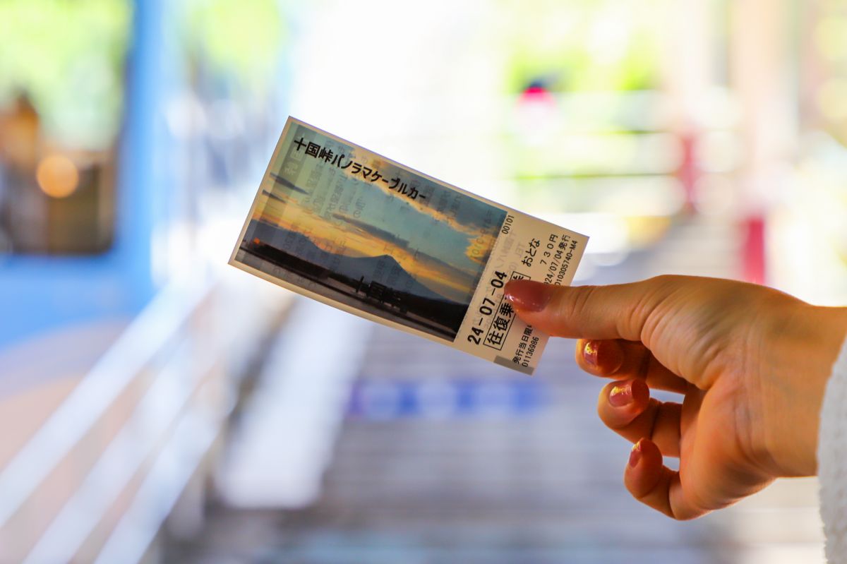 展望台からの眺めがデザインされた乗車券を購入し、出発。毎時00分、15分、30分、45分発の15分間隔で運行しています。