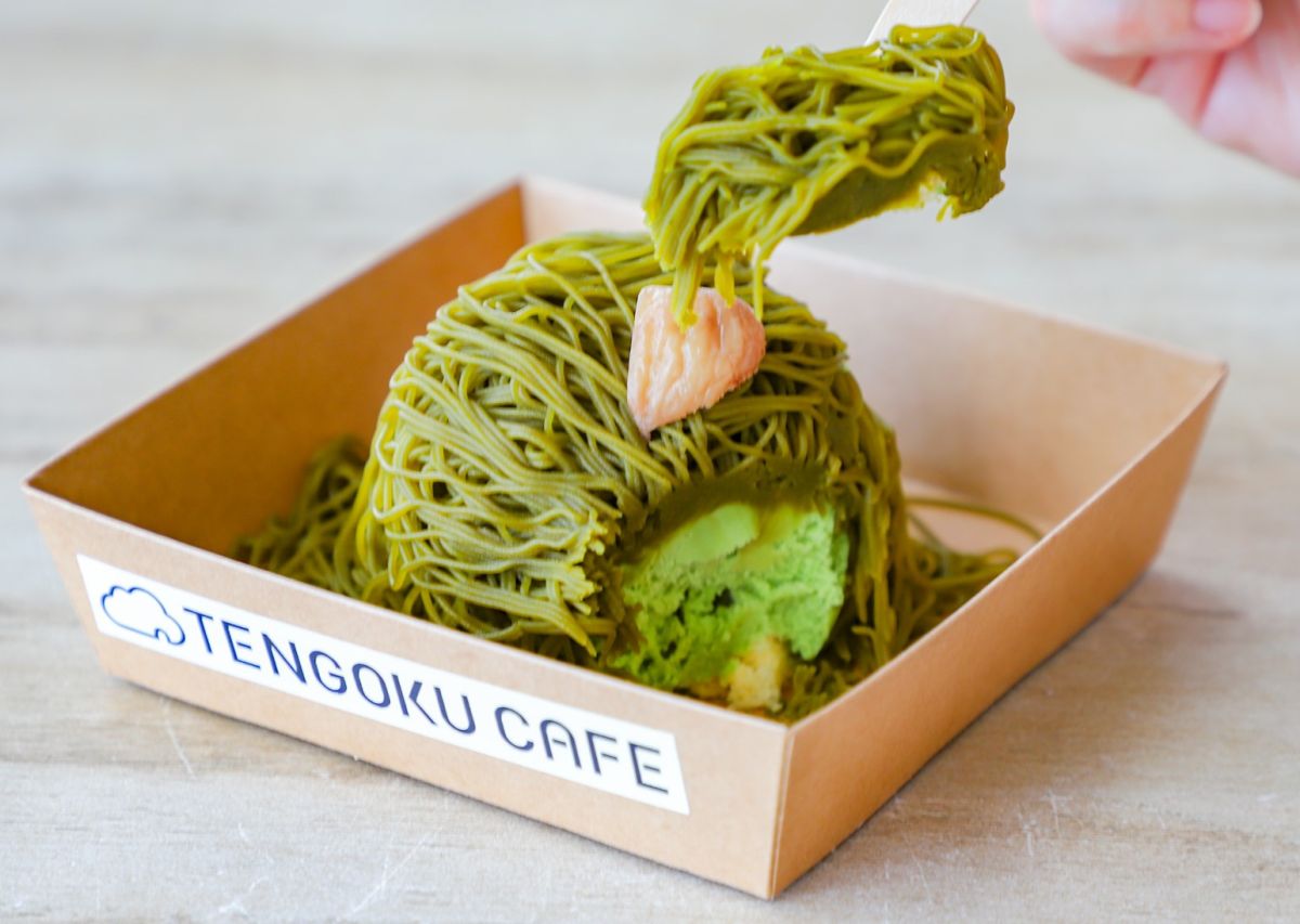 おすすめは静岡茶を使用した「1059モンブラン」。濃厚な抹茶ペーストの中には抹茶アイスが入っていて、抹茶好きにはたまらない一品。土台のスポンジには、コーヒーを染み込ませています。