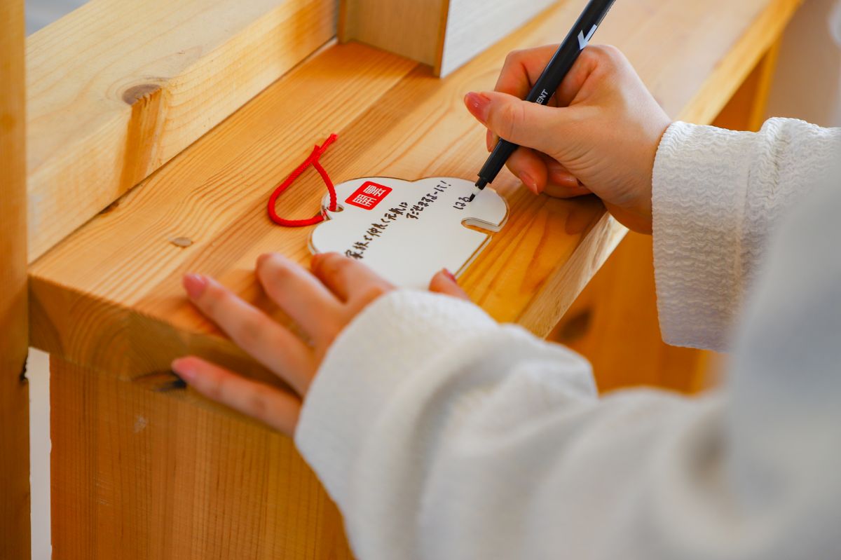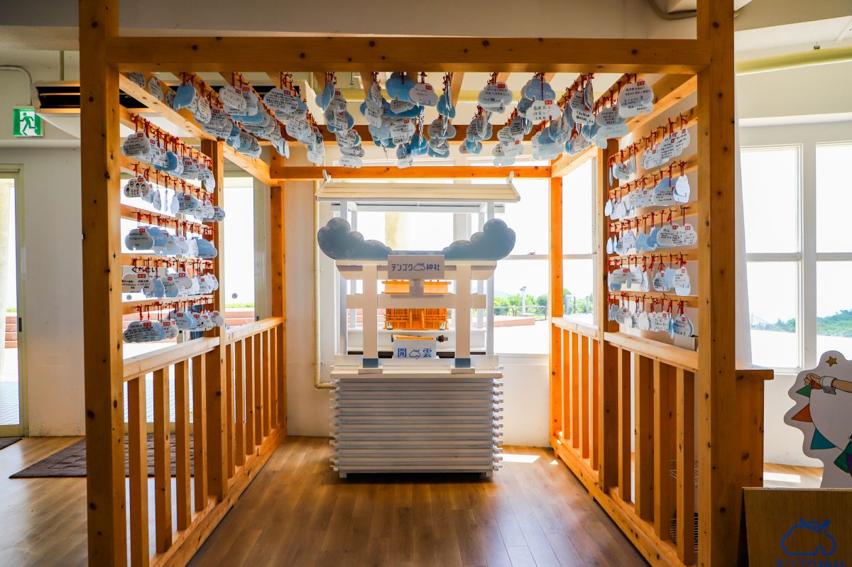 カフェの隣にある「テンゴク神社」にも立ち寄ってみましょう。雲が開け、絶景が目の前に広がる様子「開雲」=「開運」にちなんだ雲形の絵馬は、カフェで購入が可能です。パノラマビューに向かって願いを込め、お参りしてみては。
