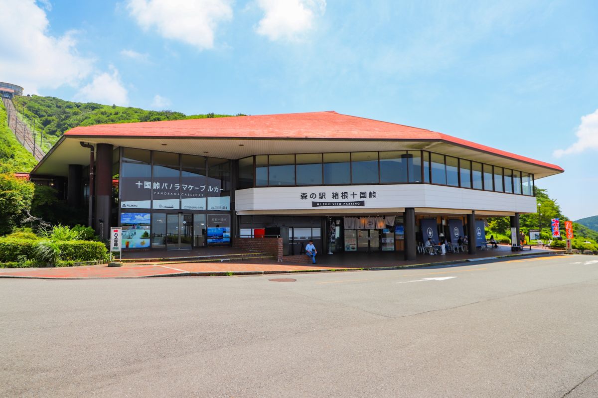 一大温泉地として知られる神奈川県・箱根と、静岡県・函南町の中間に位置する十国峠(じゅっこくとうげ)。1956年にケーブルカーの運行が開始され、十国峠展望台がオープンして以降、富士山を望む名所として親しまれてきました。その素晴らしい眺望は国の登録記念物になっています。古くからの景勝地が2022年に「PANORAMA TERRACE 1059」としてリニューアルし、若者にも人気のスポットに。さっそく森の駅箱根十国峠2階のケーブルカー乗り場から、頂上を目指しましょう。