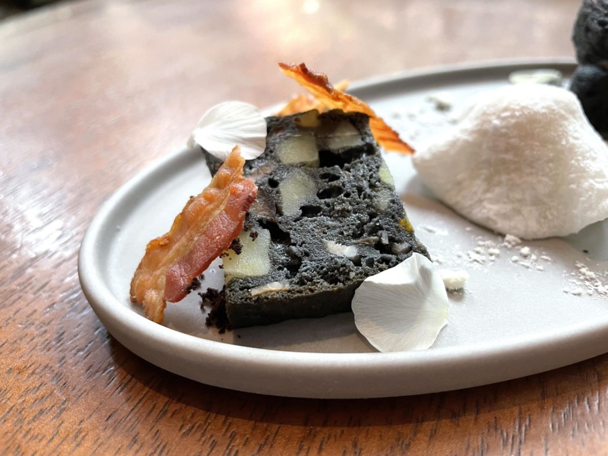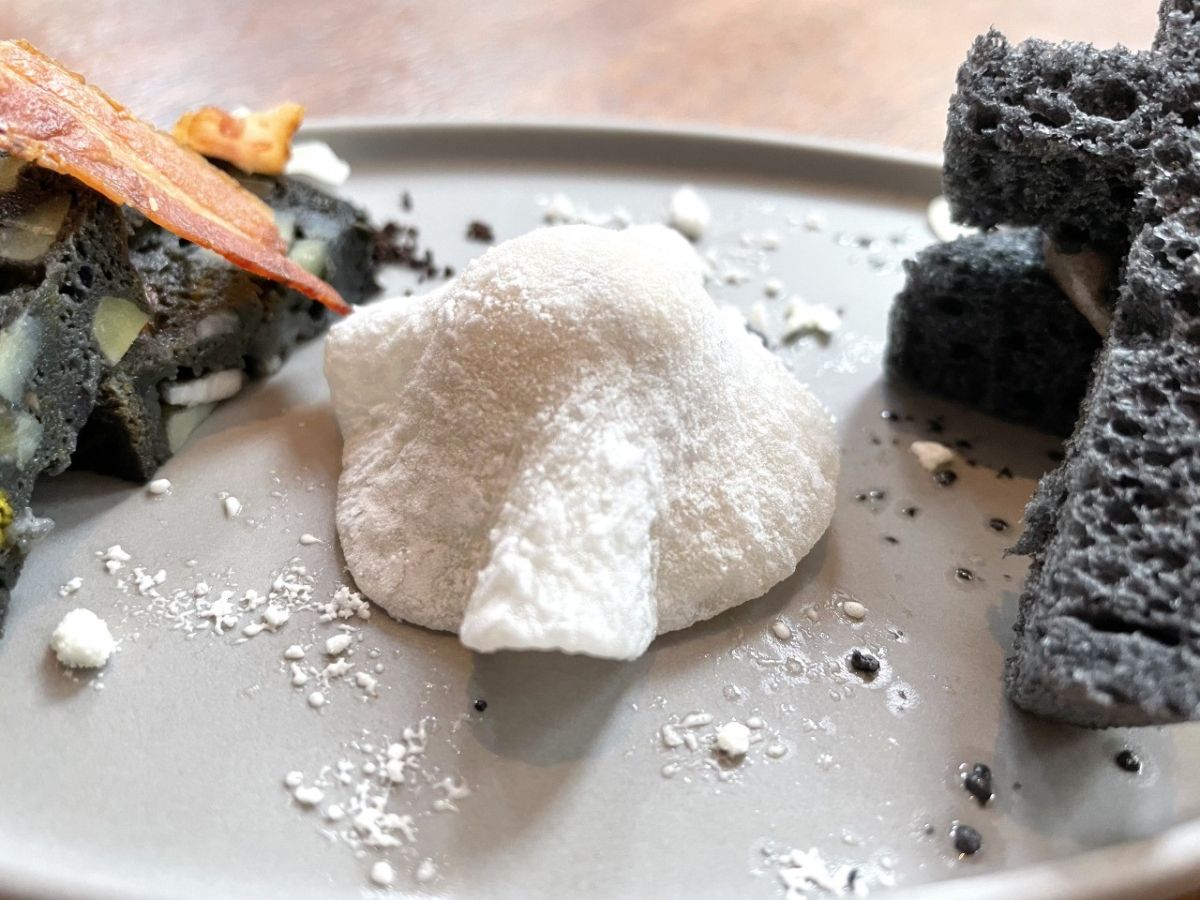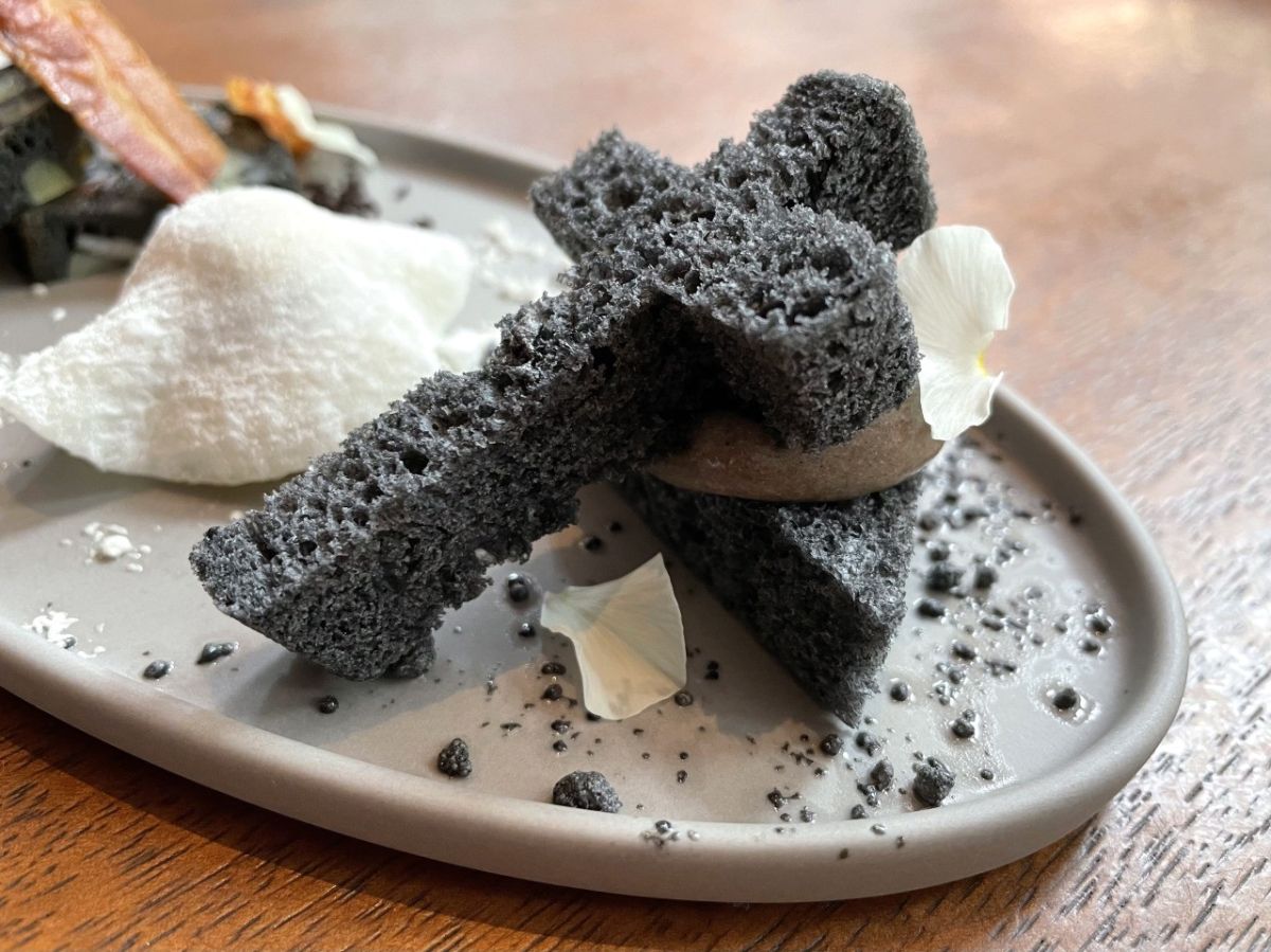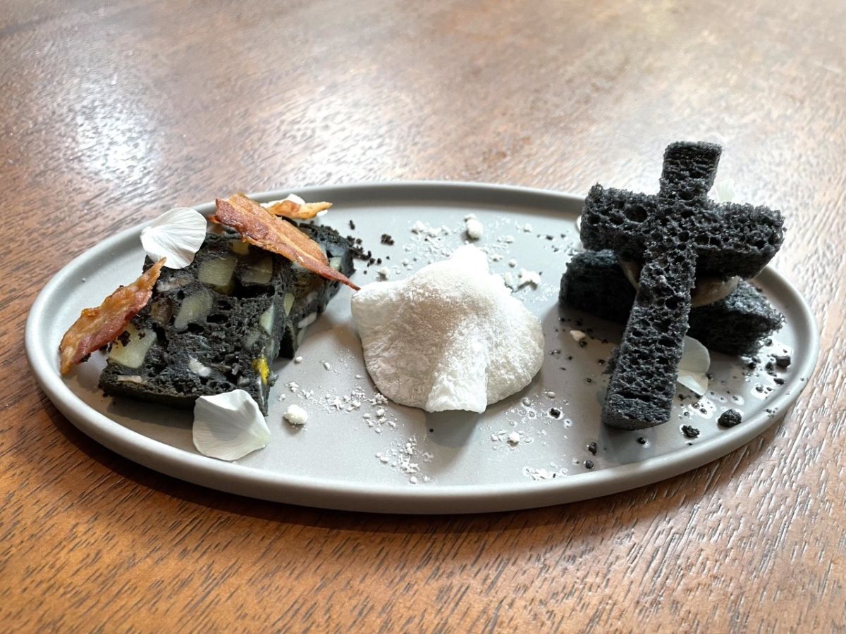 「十字架トリュフサンド」は、トリュフのペーストを黒いパンでサンドイッチした一品。
