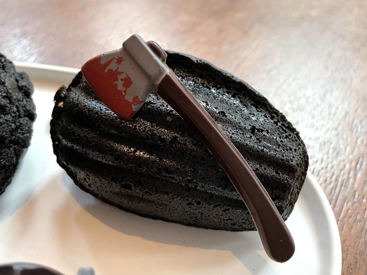 「お墓マドレーヌ」はショコラオランジュ(オレンジとチョコを組み合わせたケーキ)です。見た目は真っ黒ですが、食べてみるとショコラオランジュというギャップがこちらも良いですね。