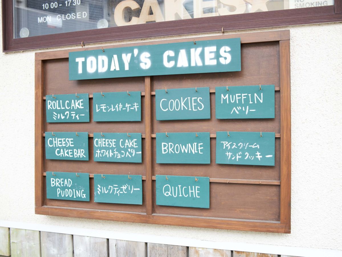 その日店頭に並ぶケーキやクッキーは、入口横のボードに掲示されます。今何が焼きあがったかな……?が知りたい場合は、お店の公式SNSをのぞいてみて!