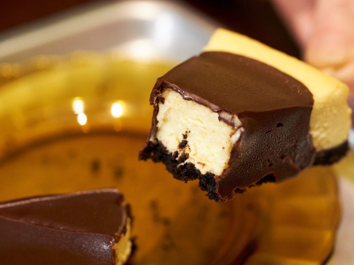 濃厚なベイクドチーズケーキとそれを包むビターチョコレートの絶妙なハーモニーは、一度食べたらやみつきになること間違いなし!底に敷いているブラックココアクッキーの香ばしさもいいアクセントになっています。