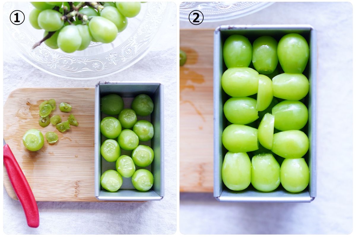 真ん中の隙間には、半分に切ったシャインマスカットを詰めます。