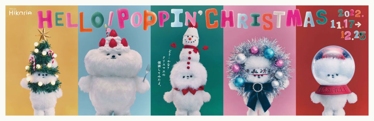 渋谷ヒカリエのクリスマスの今年のテーマは“HELLO! POPPIN' CHRISTMAS.”。「パチパチとはじけるような」「ポンポンとはずむような」という意味を表すPoppin’(ポッピン)というワードは、夢中になって心を躍らせる子どものころのクリスマスを表現しています。昨年に引き続きクリスマスシーズンの渋谷ヒカリエにやってきたクリスマスの妖精“HikariELF(ヒカリエルフ)”の活躍によって、館内はさまざまな装飾やフォトスポットでカラフルかつパワフルに!“HikariELF”と一緒に渋谷ヒカリエだけのクリスマスの世界を楽しみましょう。