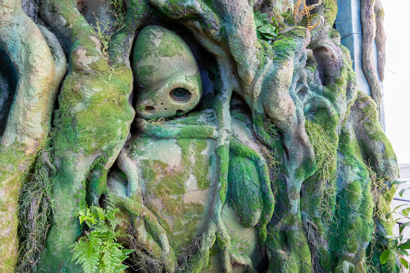 壁の中には木に飲み込まれたロボット兵の姿もあり、本当にラピュタの廃墟に迷い込んだような気分になりました。