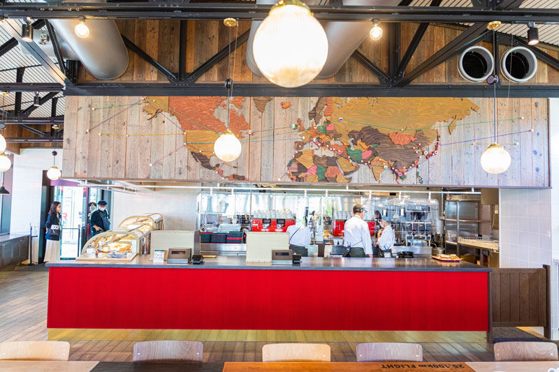「ジブリの大倉庫」を歩き回って疲れたら、併設の「カフェ 大陸横断飛行」で一休み。