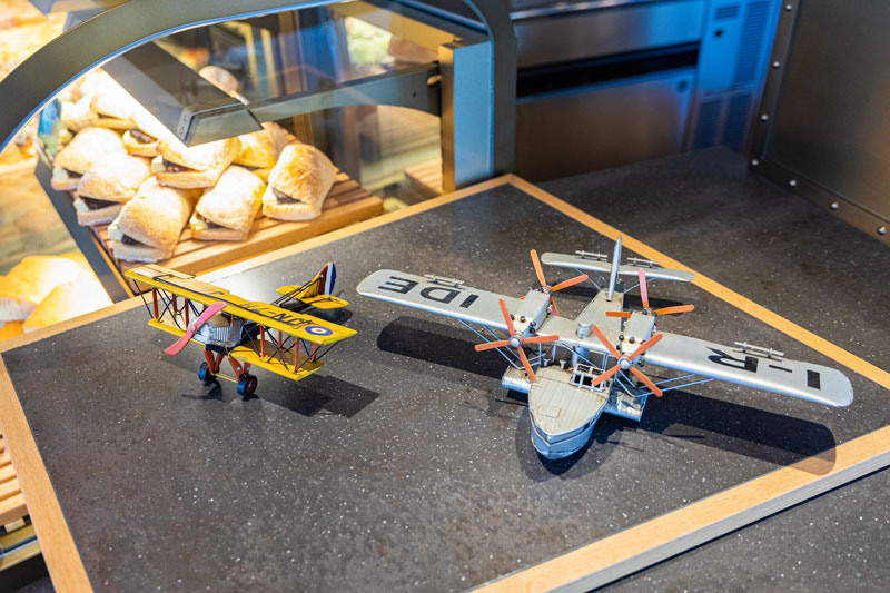 店内には至る所にフライトをモチーフにした意匠がちりばめられています。
