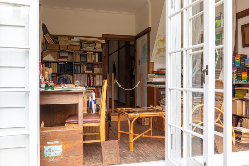 お父さんの書斎にはたくさんの本が!外と中の両方から見ることができます。