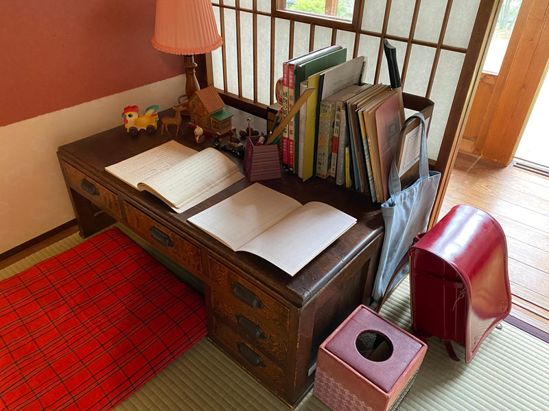 サツキの勉強机にはしっかり者のサツキらしく、教科書やノートがきれいに並べられています。