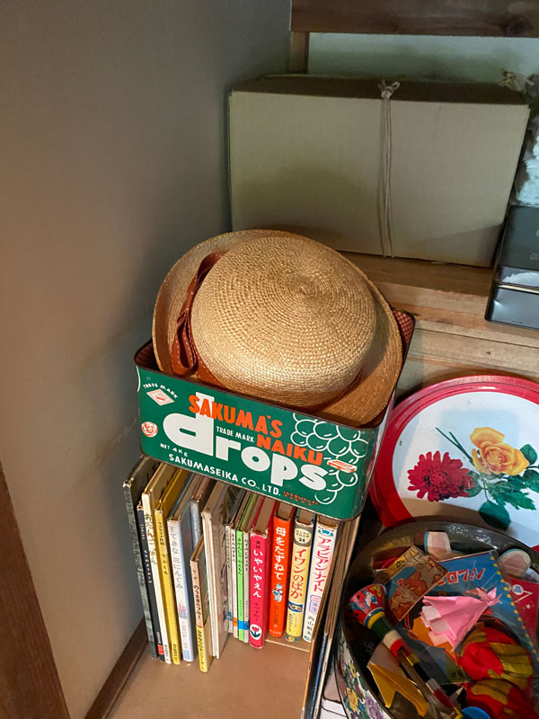 押し入れの中にはメイのものらしき麦わら帽子が。ジブリおなじみの児童書も置いてありましたよ。