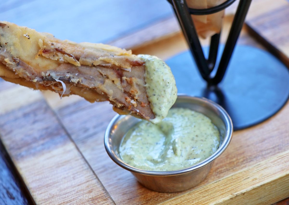 「アペティート」のシグネチャーメニューのひとつである「ポートベロフライ」も絶対に外せない一品です。軽い衣をつけてさっと揚げた肉厚のポートベロマッシュルームのフライで、さくっ、ぷりっ、じゅわ~の食感が最高!これを食べないと損をするといっても過言ではないほどのおいしさです。