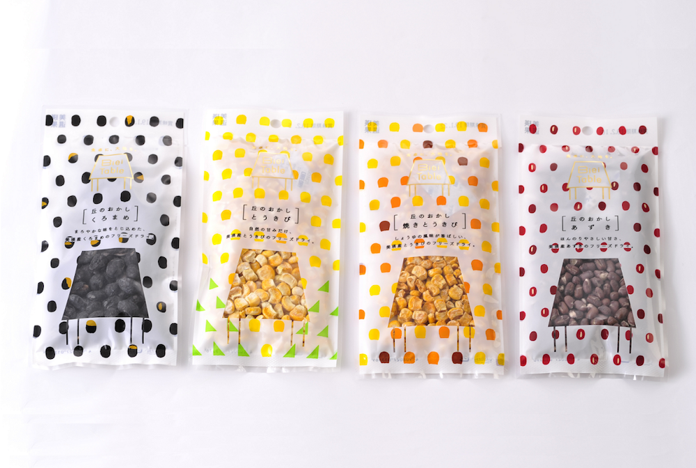 JAびえいが手がける、北海道美瑛産野菜の魅力を発信するアンテナショップ「美瑛選果」。美瑛の味覚がギュッとつまったフリーズドライのお菓子「丘のおかし」シリーズはどれもほんのり優しい甘さが特徴です。