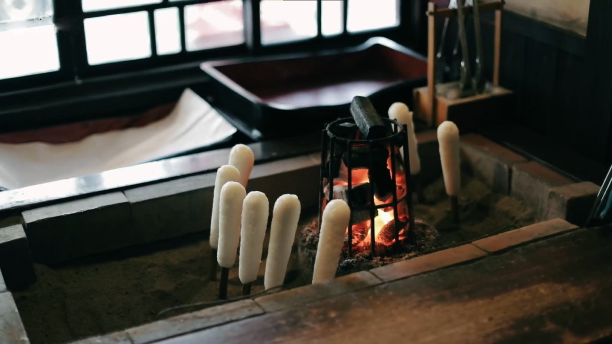最後に訪れたのは、秋田県秋田市にある「秋田きりたんぽ屋本店」。こちらは秋田県の、郷土料理のほとんどを味わえるという注目のお店です。マタギ(狩人)の生活感を感じさせる古民家風の店内には、さっそく炭火で焼くきりたんぽが! なんだか懐かしくて落ち着く雰囲気のなか、美味しい絶品グルメを堪能。驚いたのが、ハタハタの卵。なんと12~2月の産卵シーズンには、卵を持ったハタハタを味わえるかもしれないそう。お待ちかねのきりたんぽ鍋はおひとりさまサイズの小鍋をチョイス。大きなきりたんぽと旬の食材がとっても美味しそうです。
