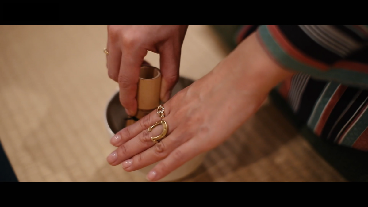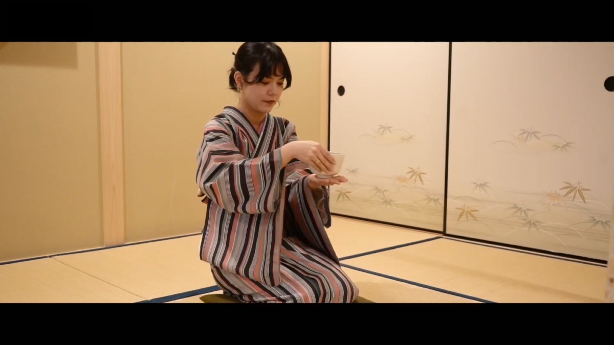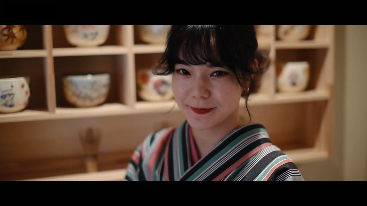 夢京都 嵐山店で着物・浴衣に着替えたら、そのまま“徒歩5秒”の位置にある「和(Nagomi)」でぜひ茶道体験を。伝統ある清水焼の抹茶茶碗に祇園辻利の抹茶、清水寺御用達のお菓子など、本格的ながらも手軽なお抹茶体験が楽しめます。お抹茶の作法を教わりつつ、慎重に茶碗を回すメイさん。こちらも堅苦しい雰囲気なしで楽しめ、動画内では笑顔と笑いがたっぷり♪ 夢京都と同じく、こちらも予約してからの利用がおすすめです。