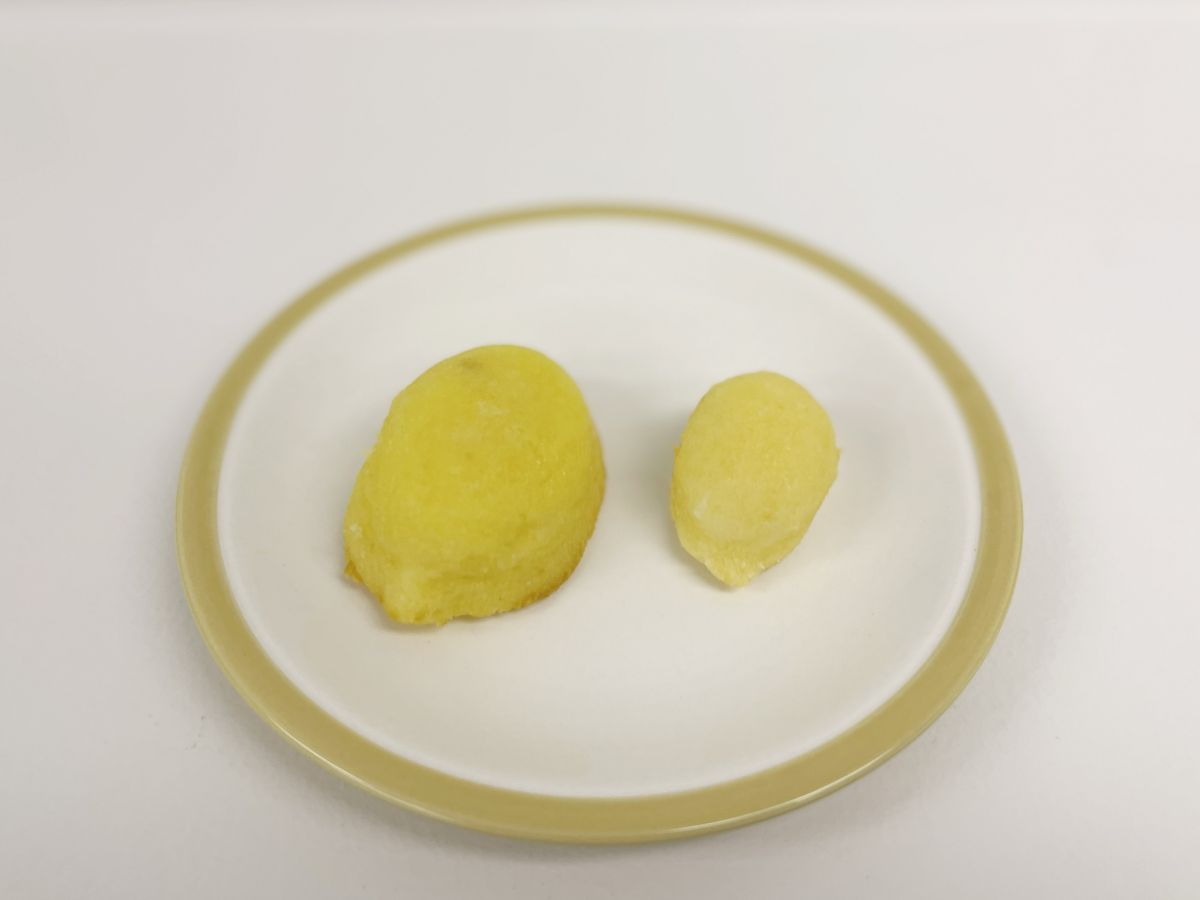レモンケーキの生地をあえてカヌレ型に入れて焼くことで、香ばしさと食感がプラスされるそう。中はふわっと、外はサクッとした独特な食感がクセになります!