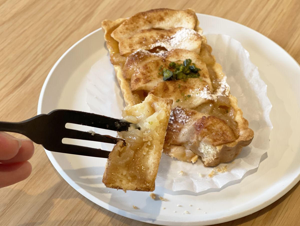 みずみずしい甘みと酸味のピューレに、シナモンシュガーの風味が加わると、やさしい味わいに。サクサクのタルトととろっとしたピューレが奏でる食感のコントラストもおいしさのポイントです。