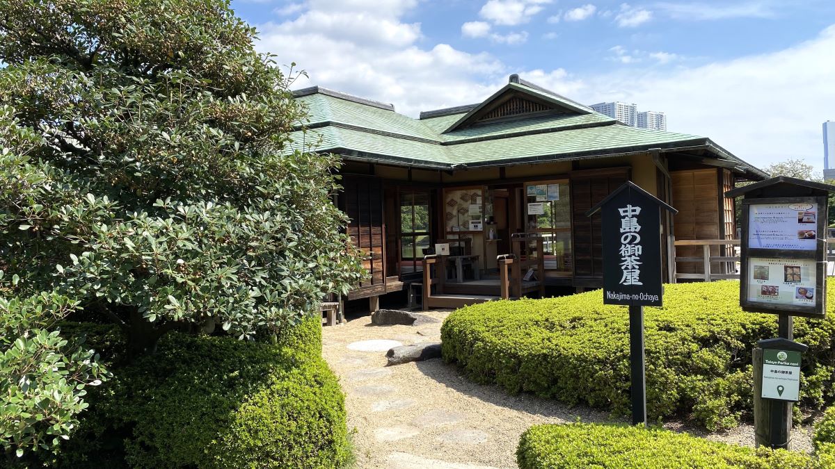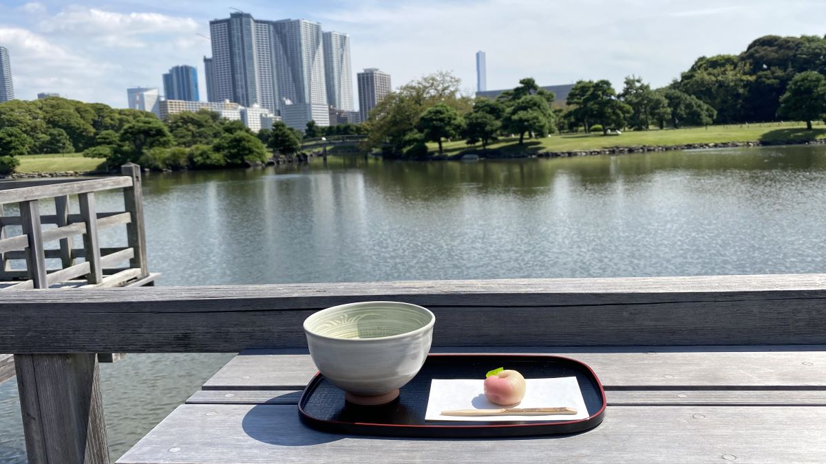 ここ「浜離宮恩賜庭園」を訪れたらぜひ立ち寄っていただきたいおすすめのスポットが、潮入の池の中島にある「中島の御茶屋」。こちらでは御茶屋で休みながら、生菓子やどら焼きなどの和菓子とお抹茶を楽しむことができるんです!