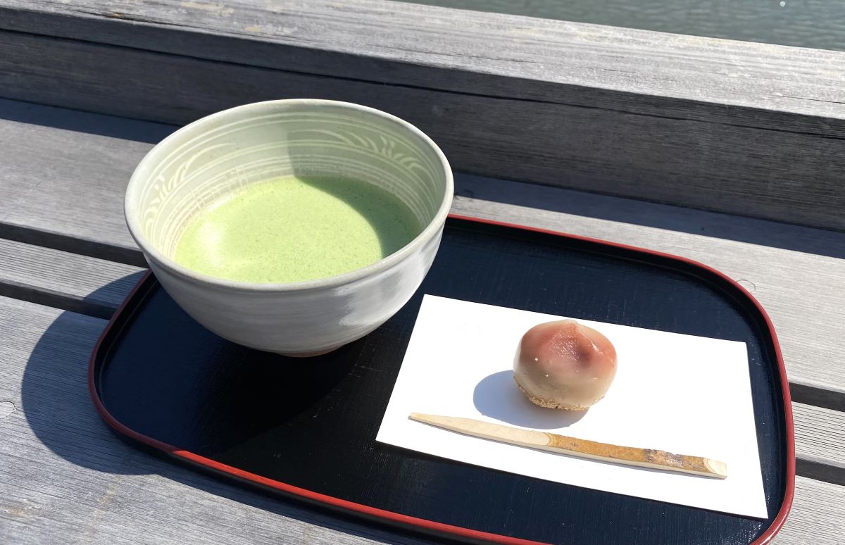 生菓子とお抹茶を、こんな絶景のなかで味わえる。入園料を含めても1000円ちょっとでこんな体験ができるなんて、ぜいたくすぎると思いませんか!