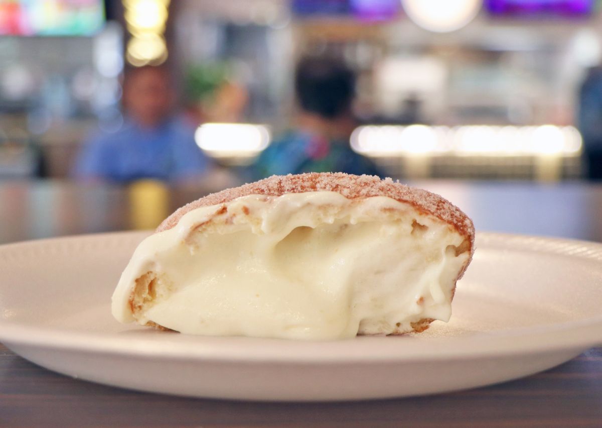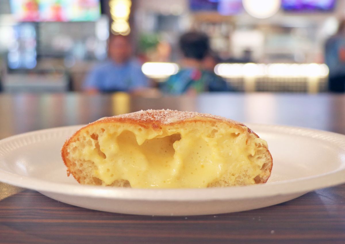 クリーム入りのマラサダは、カスタードクリーム、ココナッツクリーム、ウベクリーム、ヌテラクリーム、日替わりクリームがあり、3個入り$10.50、6個入り$17.50、12個入り$30.50となっています。一番人気はやっぱりカスタードで、生地はふわふわもちもち、クリームは甘さ控えめかつびっくりするほど軽やかで、いくつでも食べられそうな味わいです。