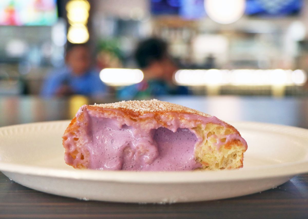 鮮やかな紫色が目を引く「ウベクリーム」は、お芋のまろやかな甘みが特徴で、どこか懐かしい味。ねっとり感のあるウベを使用したクリームは、カスタードと比べると若干重めですが、そのぶんおなかの満足度も高め。クリームによって異なるテクスチャーを楽しめるのも「ぺニーズマラサダ」の魅力です。