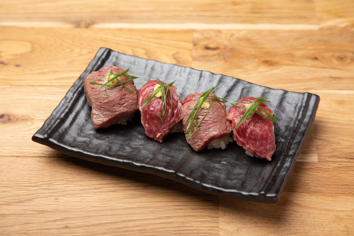 松阪牛は、松阪牛生産区域で育った黒毛和種、未経産の雌牛のことを指します。甘く上品な香りと、ヘルシーで良質な脂肪、きめの細かいサシ、口溶けのよいまろやかな食感をもつのが特徴です。そんな松阪牛を、黒コショウとニンニク風味を利かせたガーリックライスとともに召し上がれ。やわらかな脂の松阪牛との相性抜群です。