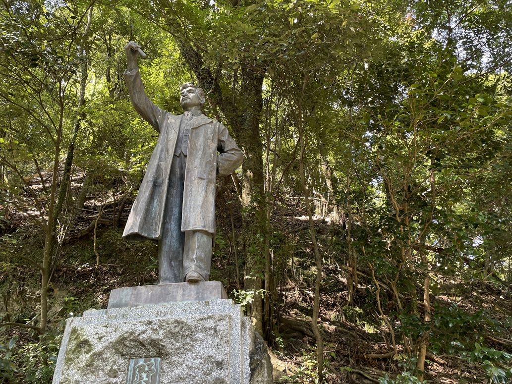 銅像は瀧安寺を通り過ぎた先、滝道の脇の階段を2分ほど登った場所にあります。