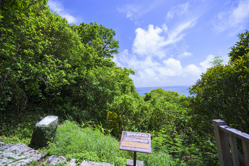 すぐそばには木々の先から久高島が眺められる久高島遥拝所もあります。いにしえから多くの人々が拝んだすばらしい眺め!