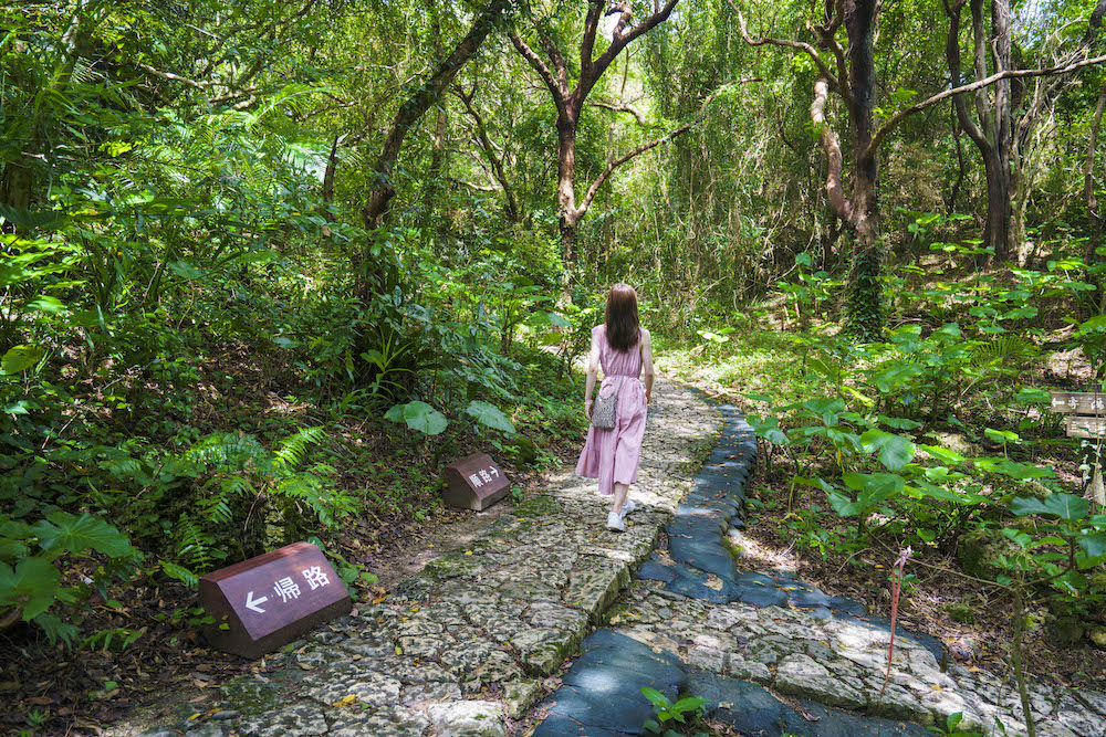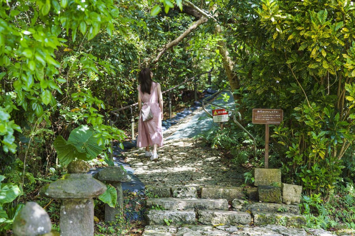 斎場御嶽は那覇空港から車で約50分、沖縄本島南部の南城市の知念半島に位置しています。琉球創世紀の神話として伝わる開闢(かいびゃく)伝説のなかでも特に重要な聖地として、琉球国王をはじめ沖縄の人々が長く大切に守ってきました。神域にあたる深い森の中に複数の拝所が点在し、1時間程度で見学できます。神聖な祈りの場所なので、慎んだ行動を心がけましょう。また、敷地内は滑りやすい上、石畳など貴重な遺構を傷つけてしまう可能性があるので、ヒールや厚底靴はNG。過度な肌の露出は控えた服装で訪れましょう。御嶽内では飲食も禁止されています。